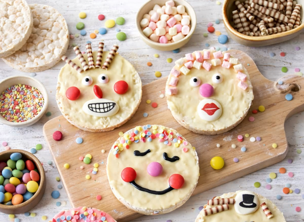 - Für eine fruchtige Variante können dünne Apfel- oder Bananenscheiben als Mund oder Haare genutzt werden.
