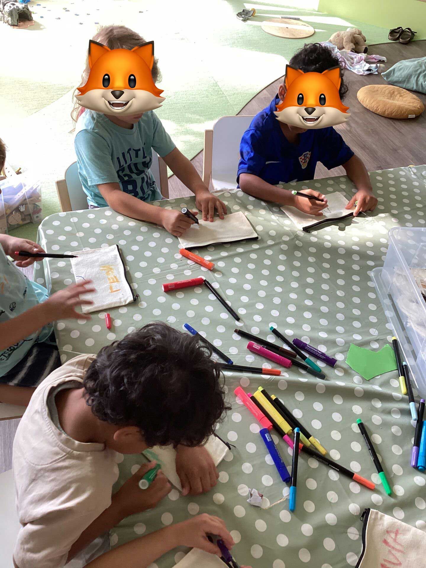 In der ersten Woche haben unsere Eulen ihre eigenen Federmäppchen bemalt. Jedes Kind hat seine ganz persönliche Tasche gestaltet, die es stolz im Vorschulalltag nutzen wird. Und wenn man sieht, mit wie viel Hingabe die Kids ihre Mäppchen verziert haben, ist eins sicher: Hier steckt schon eine Menge Kreativität drin!