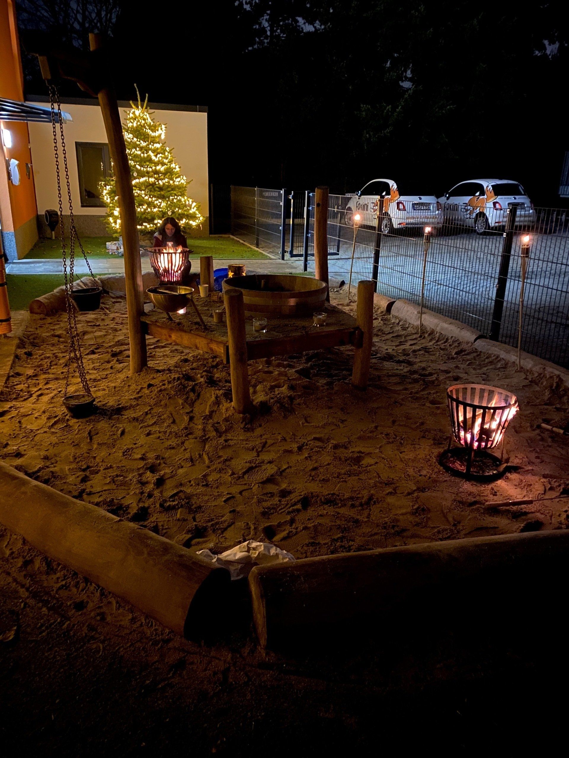 Im Laufe des Abends funkelte dann nicht nur Foxinis erste Weihnachtskugel in unserem Tannenbaum, sondern auch die Augen unserer Pädagogen, während sie bei Lagerfeuer und Stockbrot in den Erinnerungen der ersten gemeinsamen Foxini Monate schwelgten.