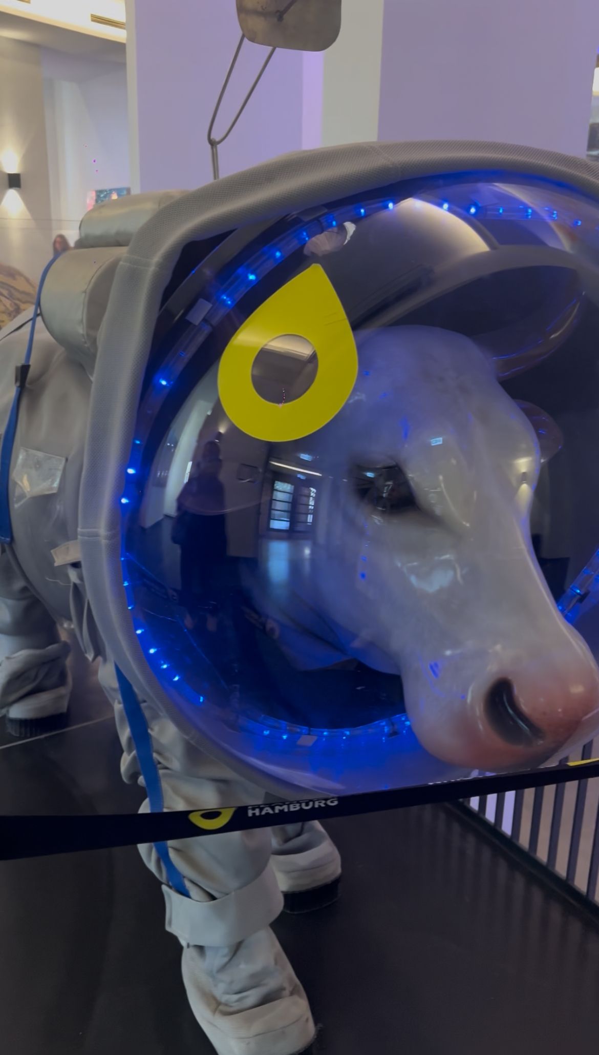 Im Anschluss hatten wir Zeit, uns im Planetarium umzusehen. Die Kinder betrachteten Bilder von Sternen, der Milchstraße und schwarzen Löchern und tauschten sich über die vielen neuen Eindrücke aus. Besonders viel Aufmerksamkeit erhielt eine „Weltraumkuh“, die für Staunen und Schmunzeln sorgte.