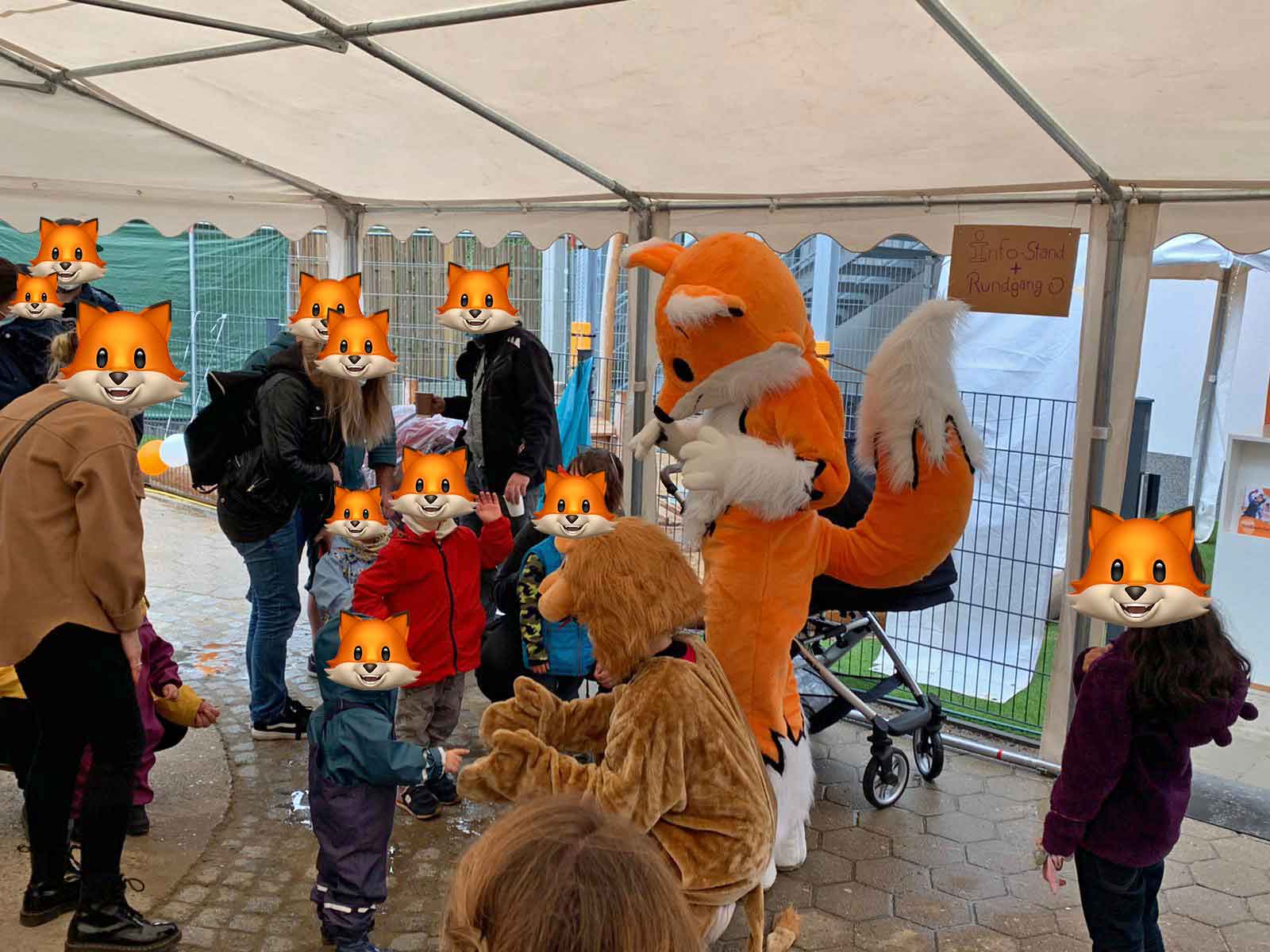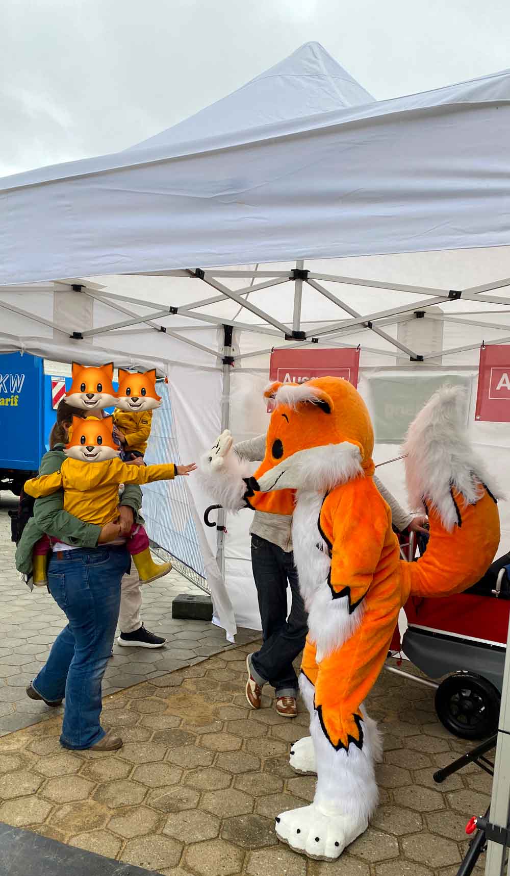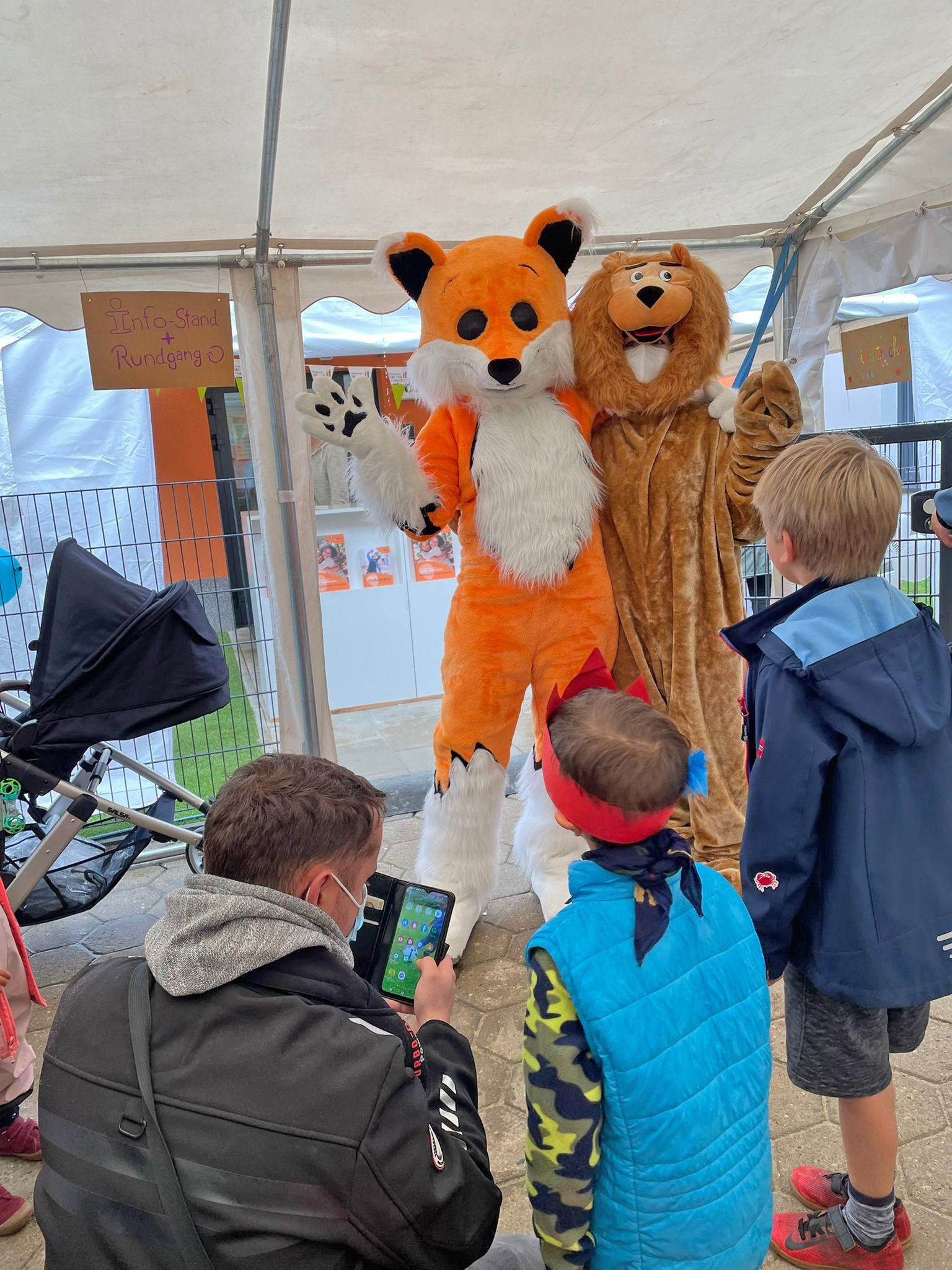 Natürlich durfte an solch einem Tag auch Foxini selbst nicht fehlen und hat alle Kinder begrüßt. Tatkräftig unterstützt hat ihn dabei der Löwe TEOLEO.