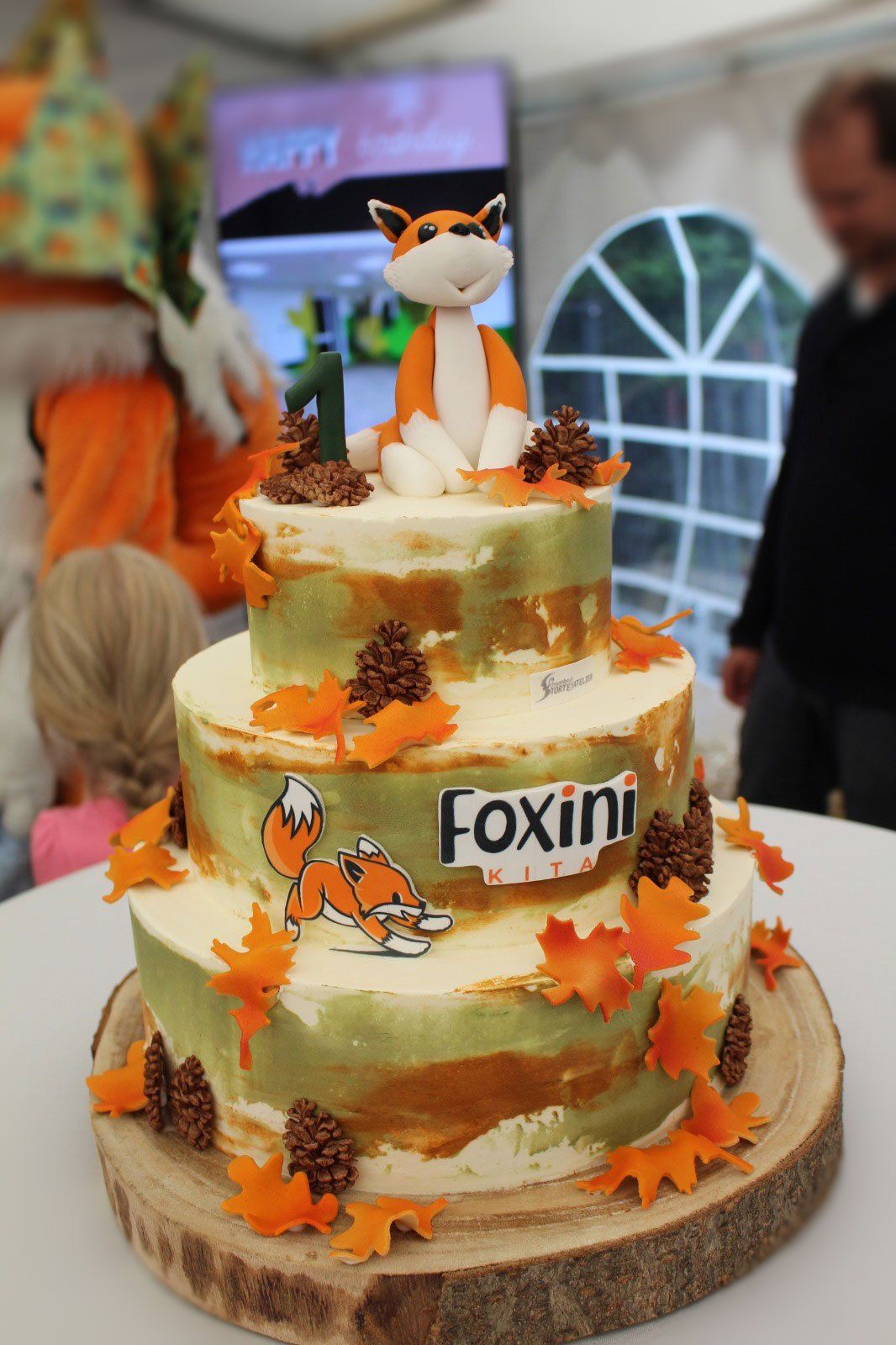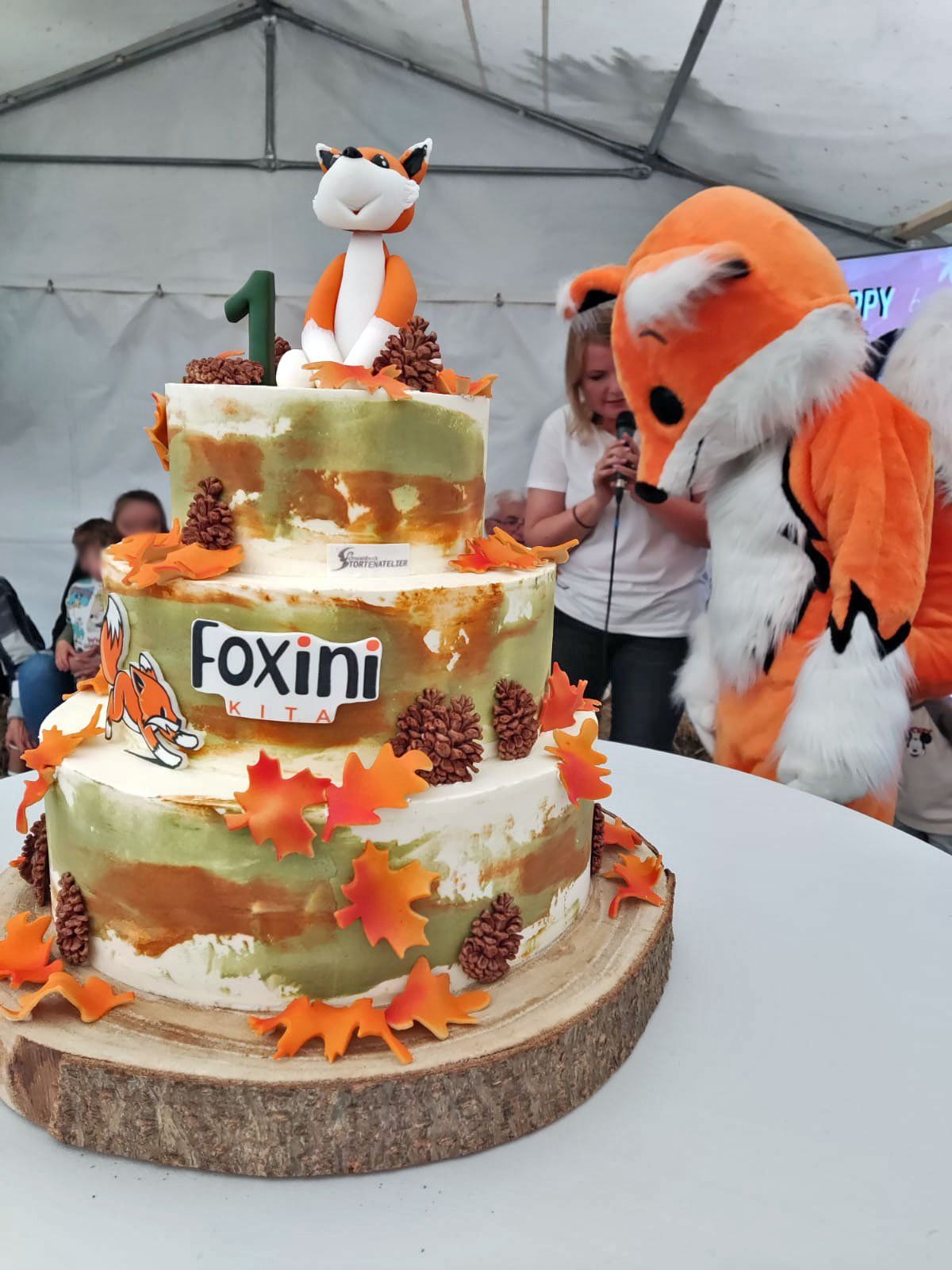Natürlich durfte auch Foxini selbst an seinem großen Tag nicht fehlen und die Kinder konnten ihm persönlich gratulieren und ein Geburtstagsständchen singen. Mit Unterstützung vom Tortenatelier Schwanenbeck hatte er auch eine tolle Torte im Gepäck - einfach lecker🤤!