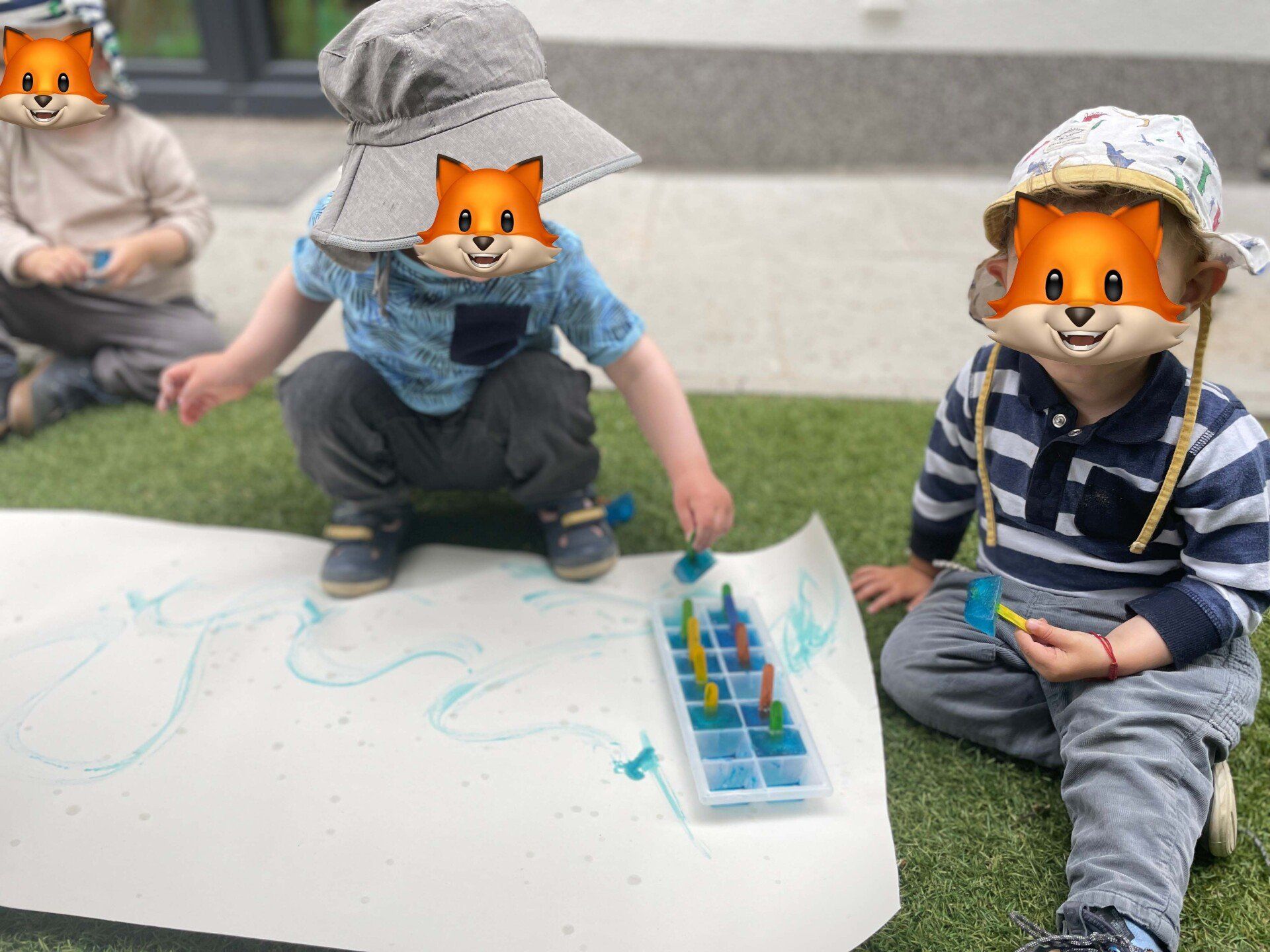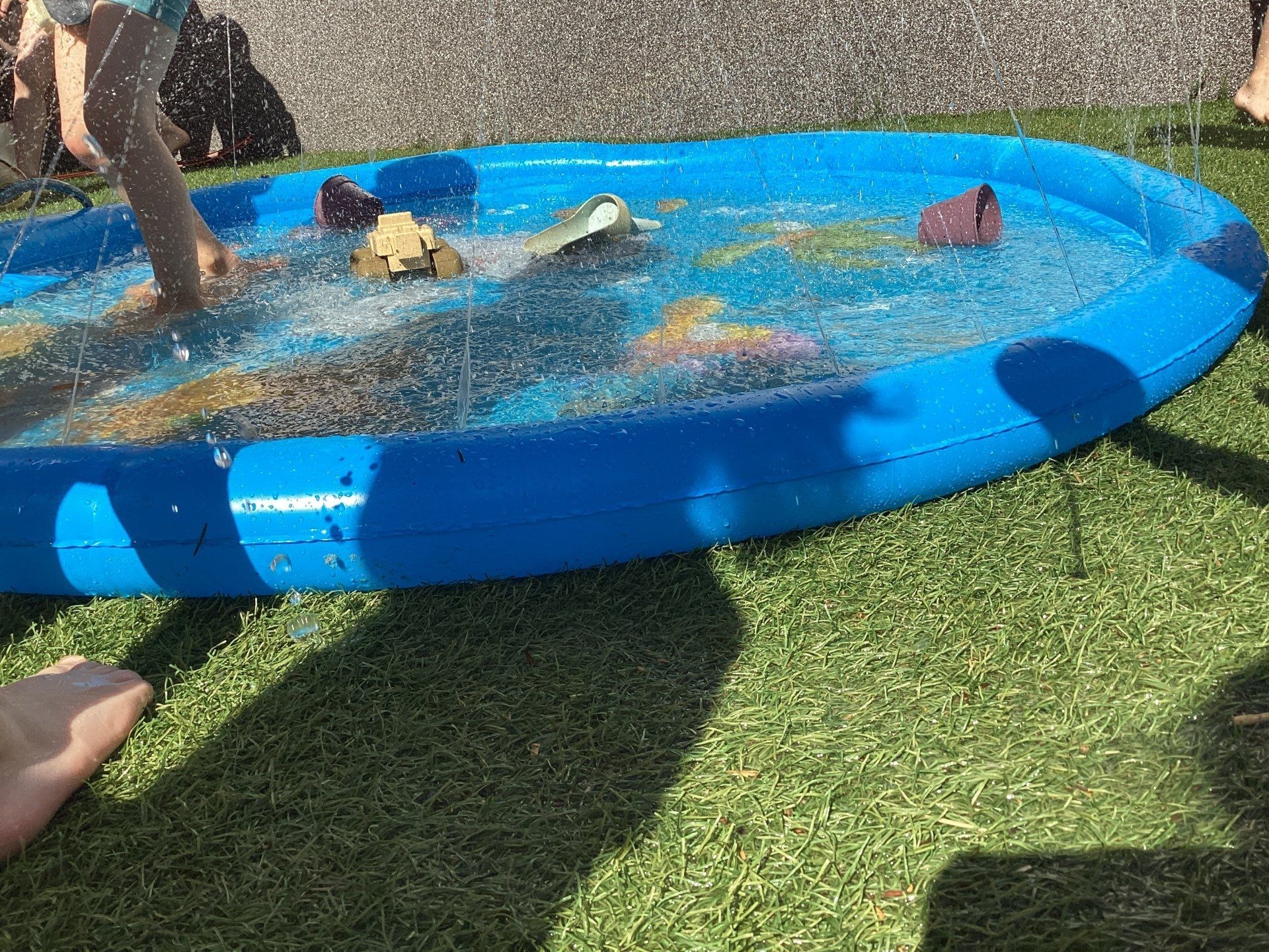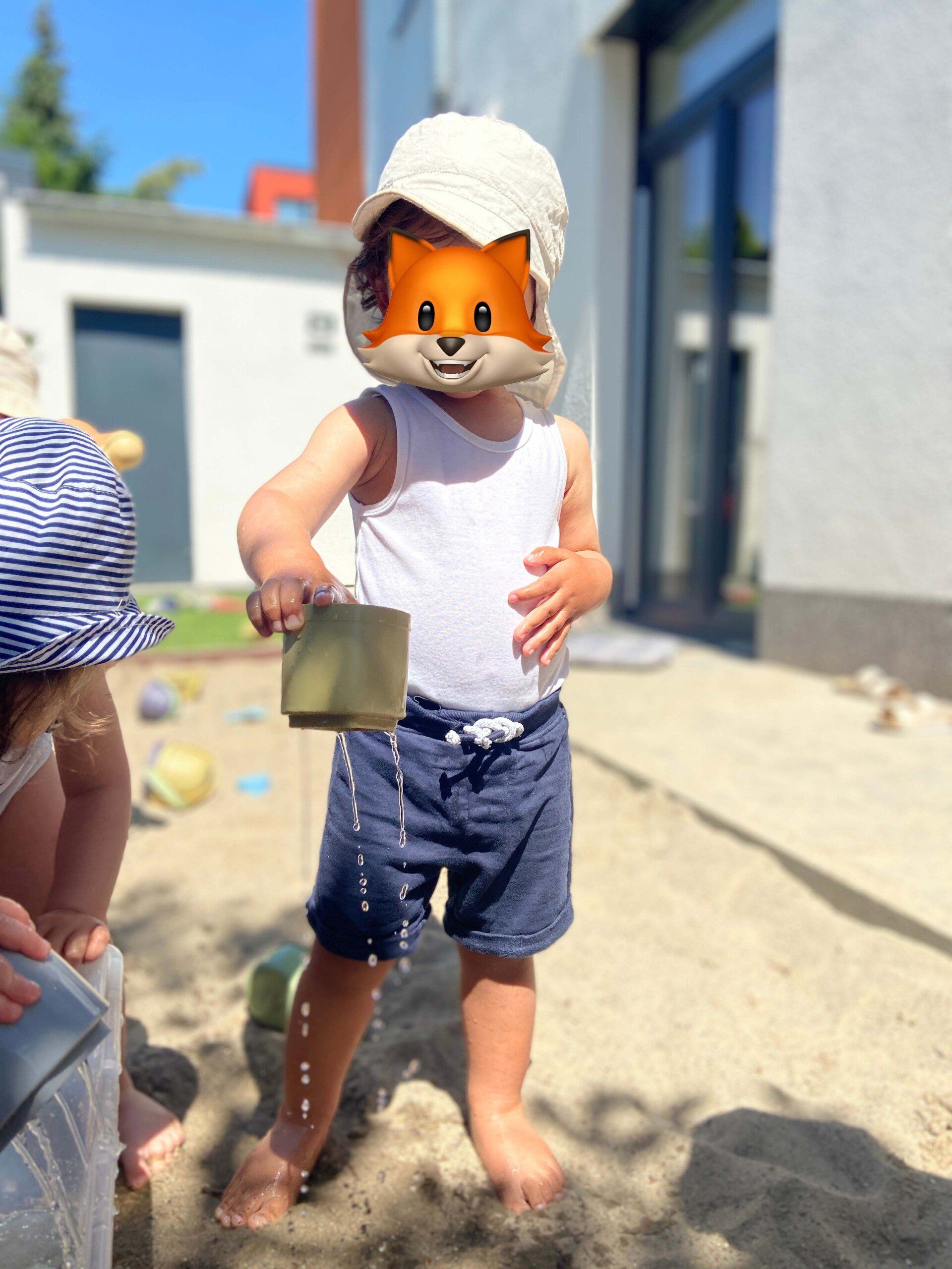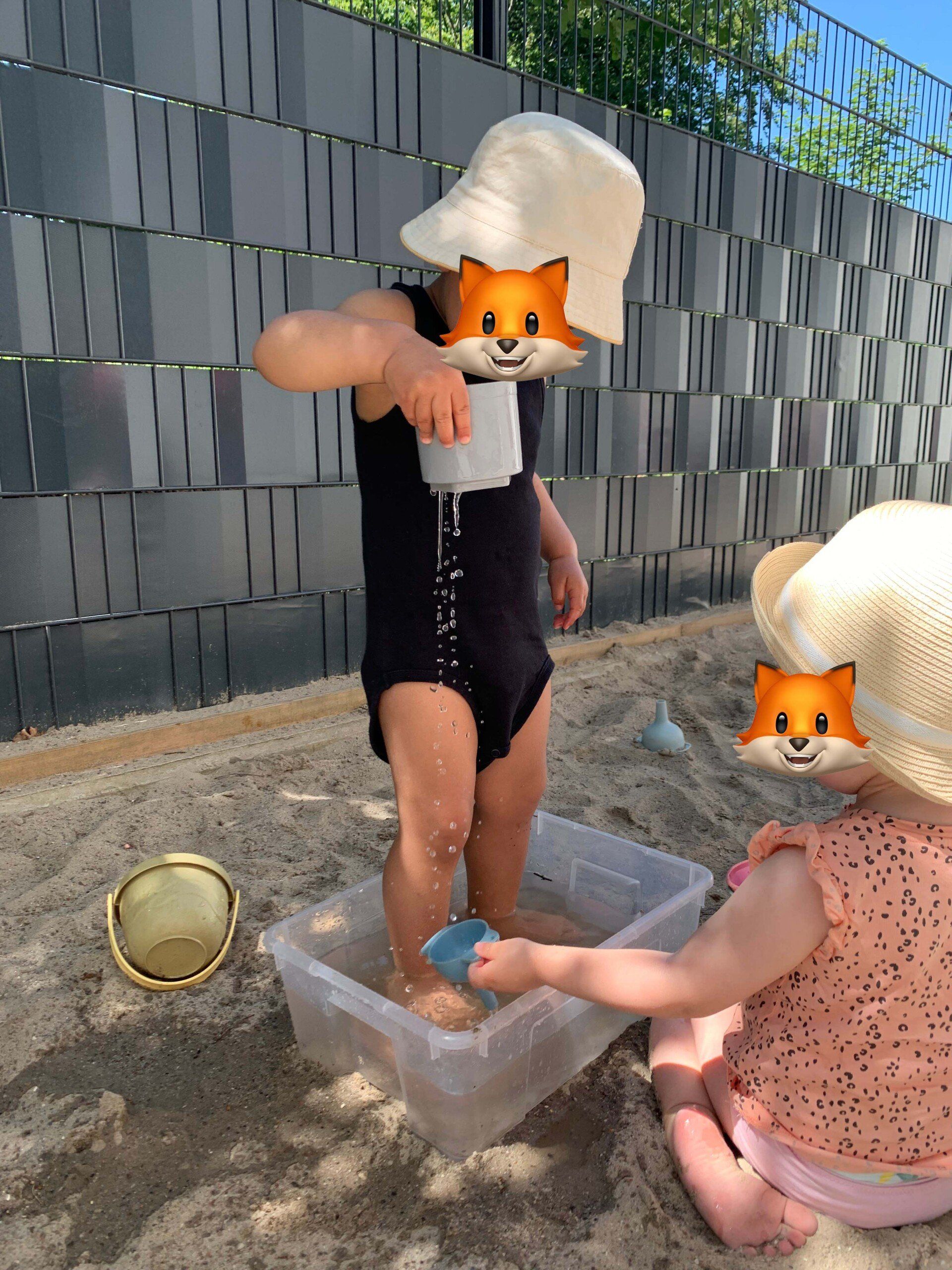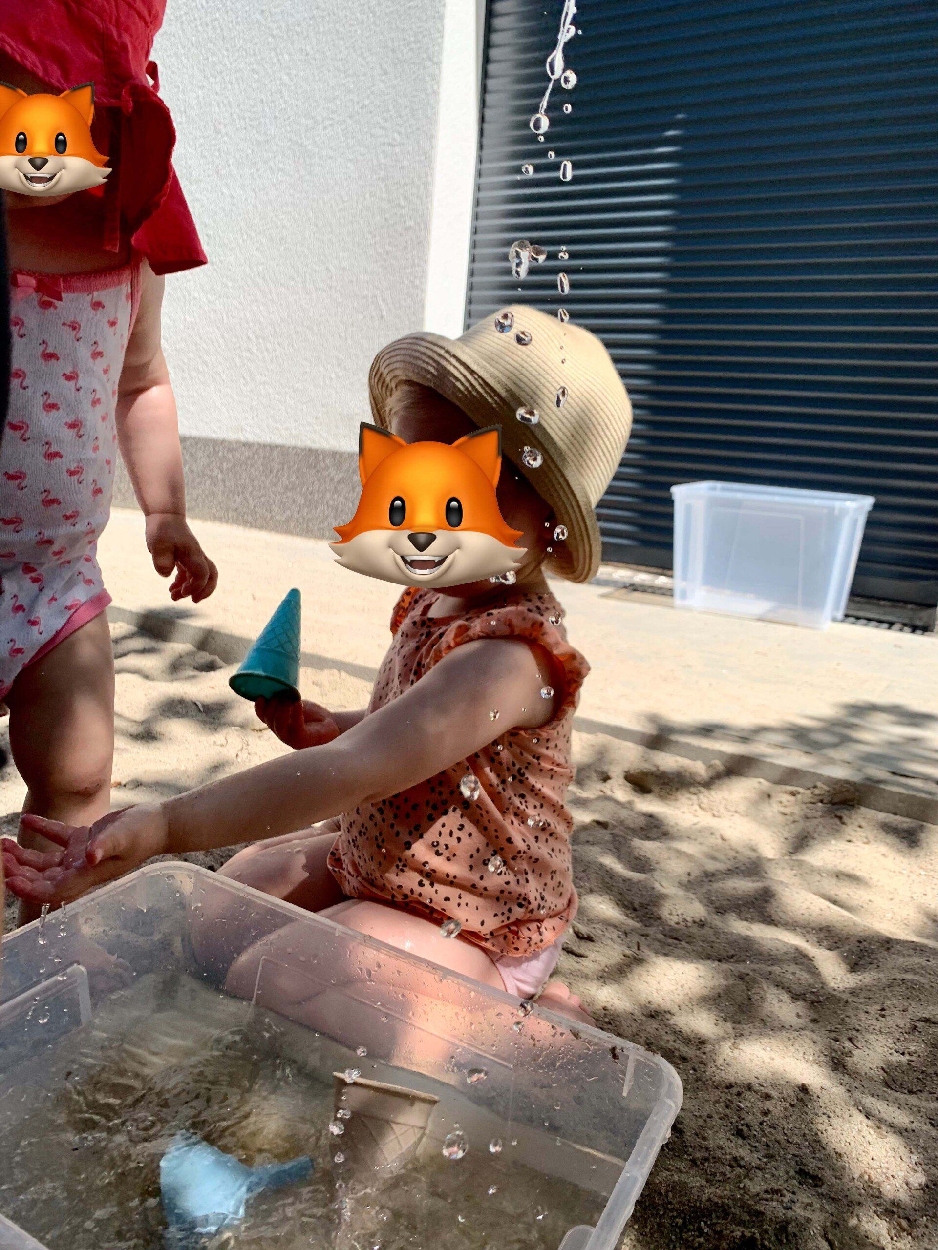 Wir haben die hohen Temperaturen genutzt, um draußen mit Wasser im Sand zu experimentierenđŠ.